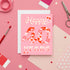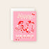 Designed in bright ruby-red tones on a pink backdrop, this cheerful card by Molly Marie Pea adds fun and flair to a heartfelt moment.
