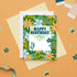 This cheerful card features a hand-illustrated envelope surrounded by blooming florals, with a sweet message that reads “Happy Birthday with Love.” With bright greens, sunny yellows, and whimsical lettering, it’s perfect for birthdays big or small.
