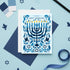 This striking Hanukkah card features a hand-illustrated menorah surrounded by stylized botanical elements, doves, and Stars of David in a rich palette of blue tones. A timeless design that honors tradition while adding a fresh, modern touch. Perfect for sending light and love during the holiday season.