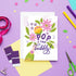 Celebrate big moments with this fun “Pop the Bubbly!” card—bright florals, champagne cheer, and space inside for your message of joy and love.