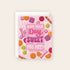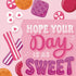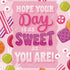 Send sugar-sweet vibes with this cheerful candy-themed card! Featuring a hand-lettered message—“Hope your day is as sweet as you are!”—surrounded by illustrated gummies, peppermints, and striped candies, this card makes every recipient feel extra special.